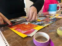 La richesse de ce que tu produis et de ce que les autres participants produisent est très varié et ton imagination se met en marche guidé par les images et les divers papiers disponibles. Pendant ton temps de création, tu oublieras un peu ton quotidien.